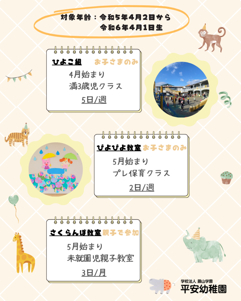 令和8年度に 3歳のお誕生日を迎えられるお子さま(対象:令和5年4月2日~令和6年4月1日生) を対象とした見学説明会を開催いたします。