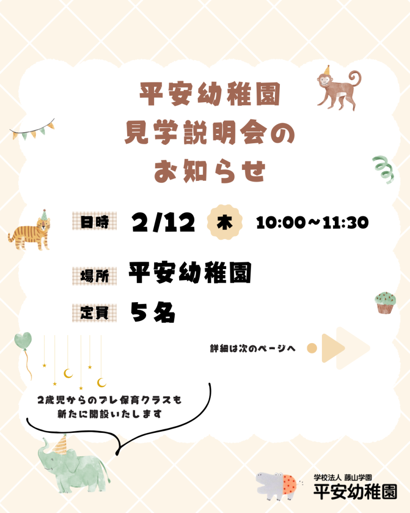 ぜひこの機会に、平安幼稚園の雰囲気や教育方針をご体感ください。