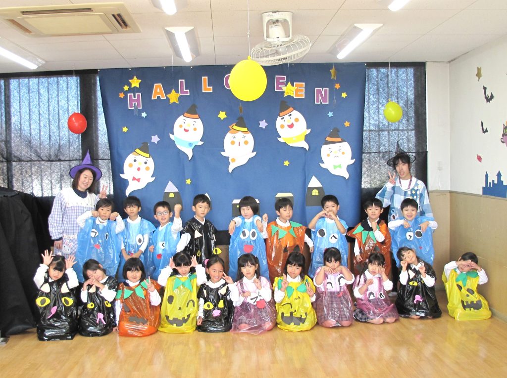 年長組はおばけと黒猫とかぼちゃに変身しました。