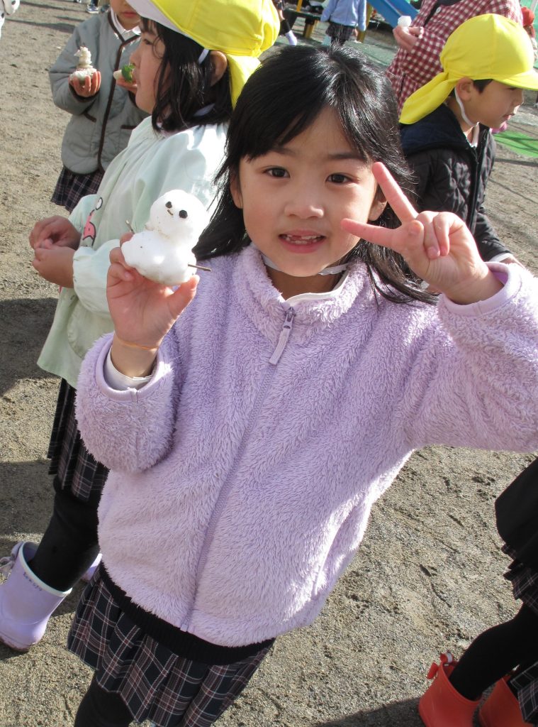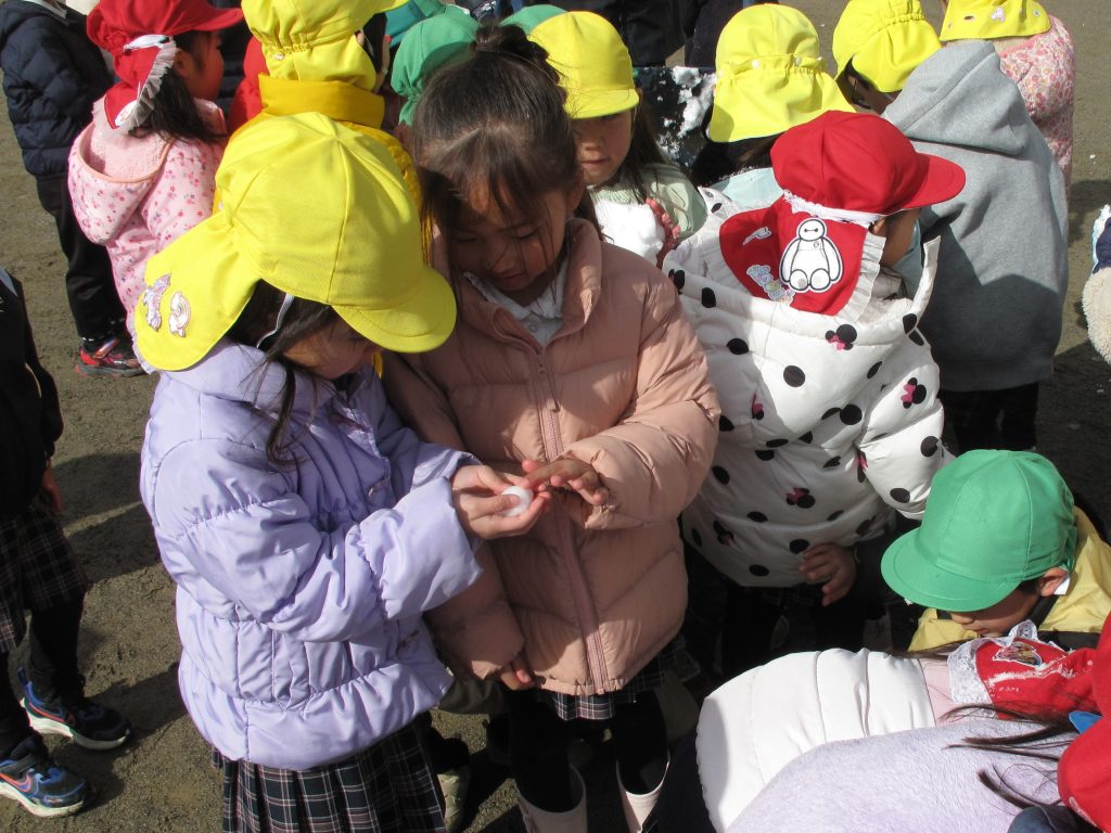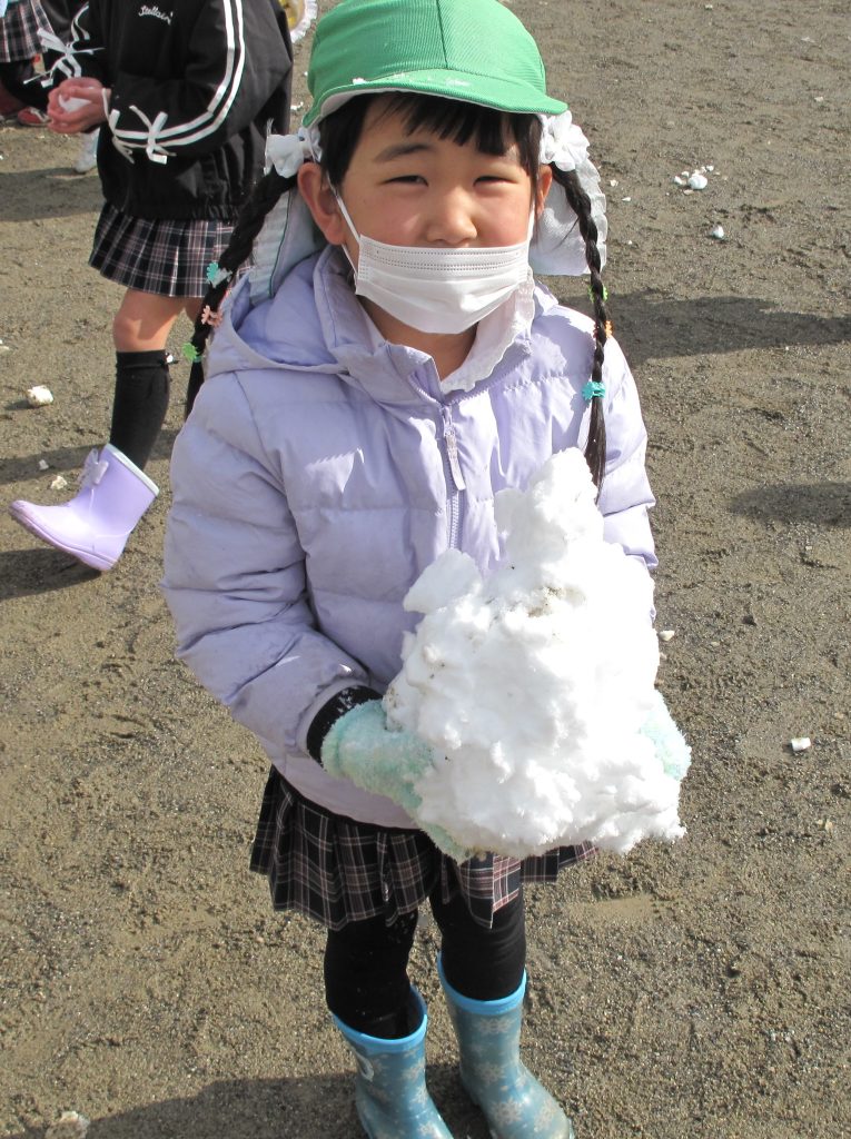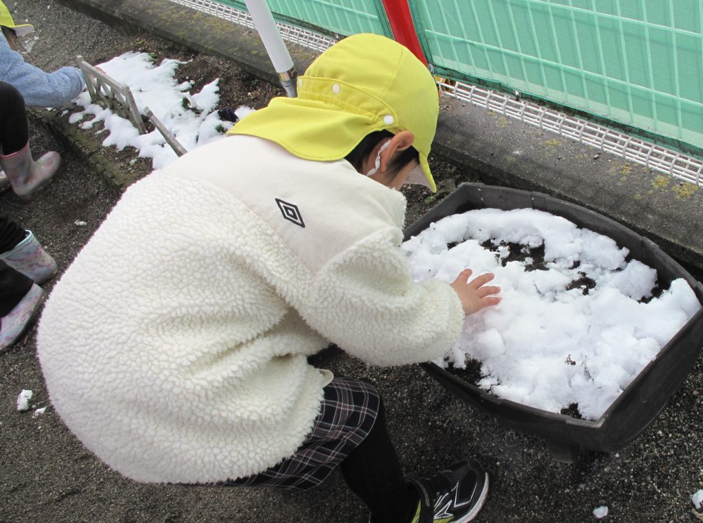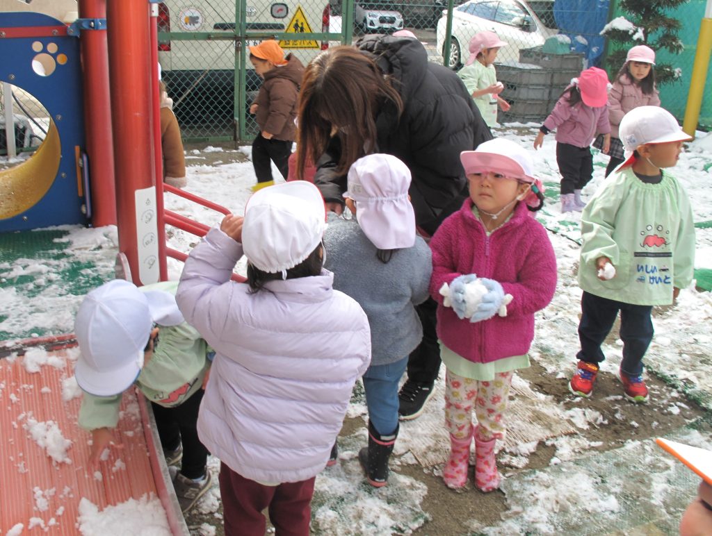 「わーい、ゆきだ~!!」「つめた~い!!」と言いながらも大はしゃぎで遊んでいました。