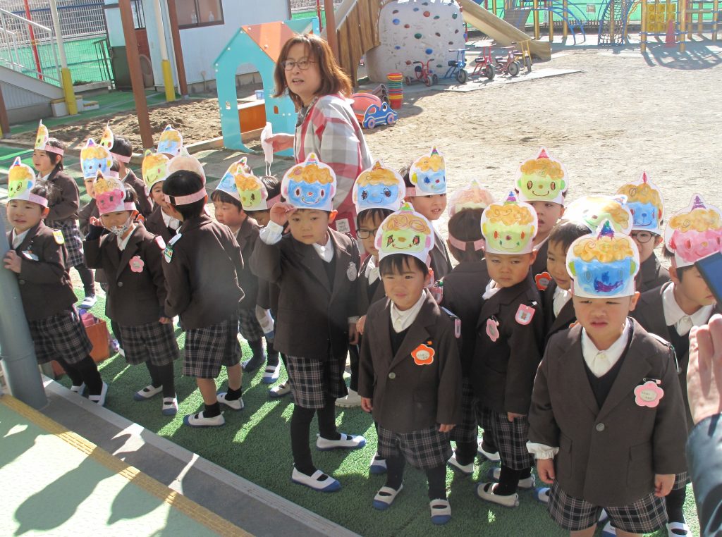 年男を先頭に、豆をまきながら園内を練り歩きました。
