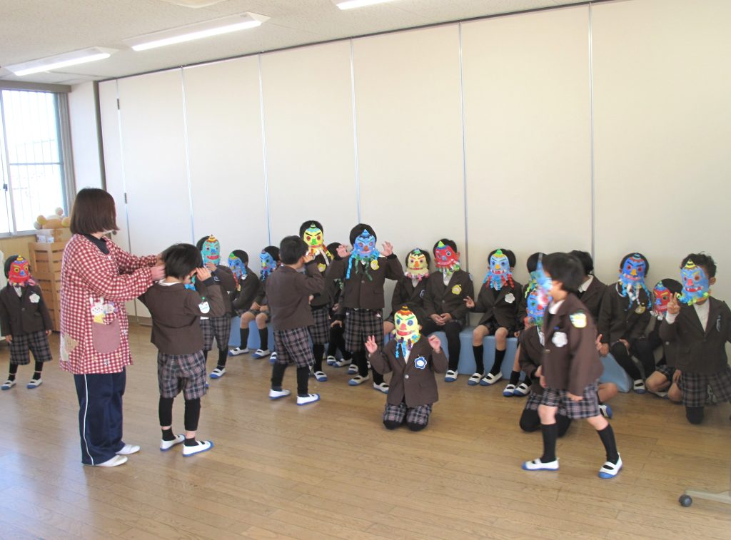年男を先頭に、豆をまきながら園内を練り歩きました。