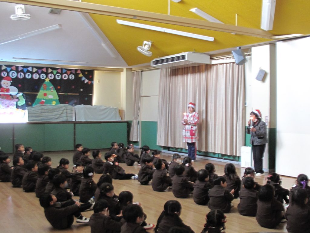 キャンドルサービスで園長先生のお話を聞きました。