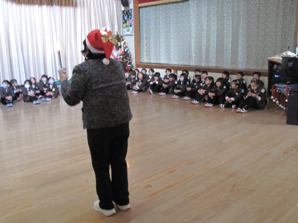 2学期にどんなことができたか、冬休みの過ごし方で気をつけること、お約束などのお話をお聞きしました。