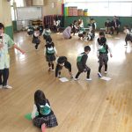 「フープ取り」は年少さんとは違って、1つのフープに入れるだけ入ります。
