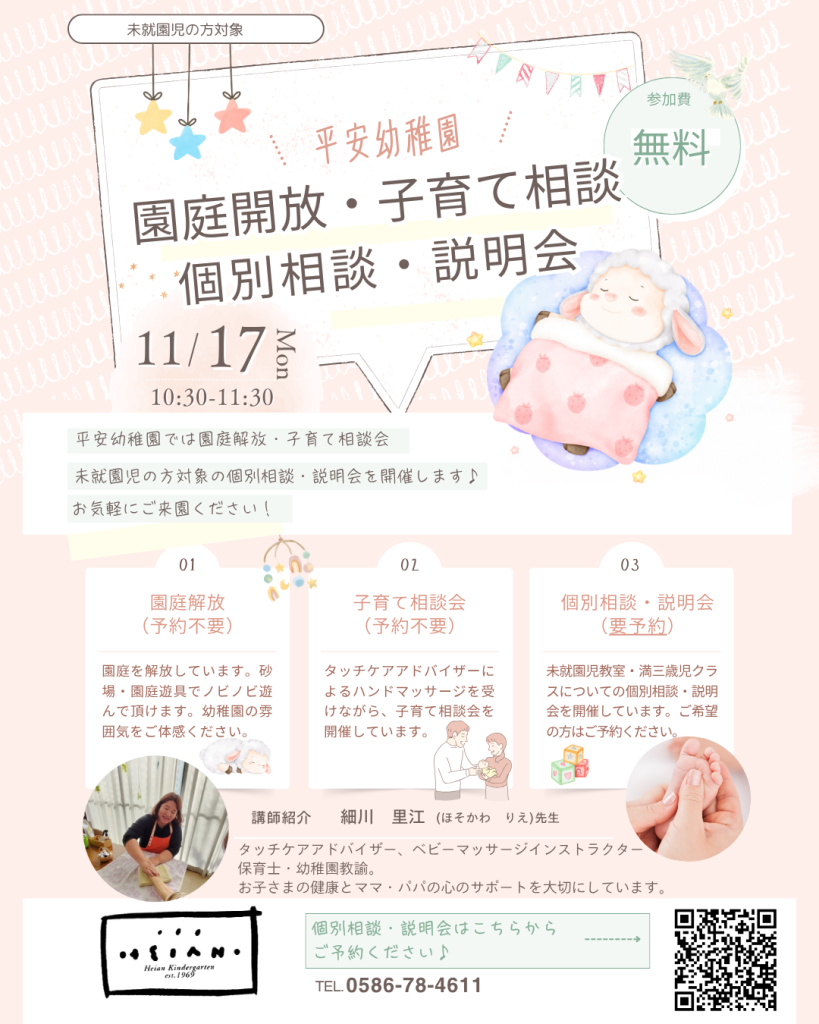 11月17日(月)10:30〜11:30に 園庭開放 を行います😊